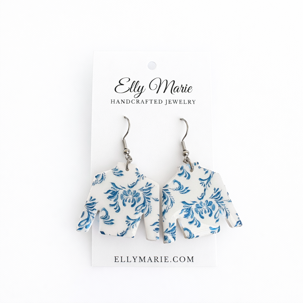 Blue & White Floral Jockey Silks-Clay Earrings