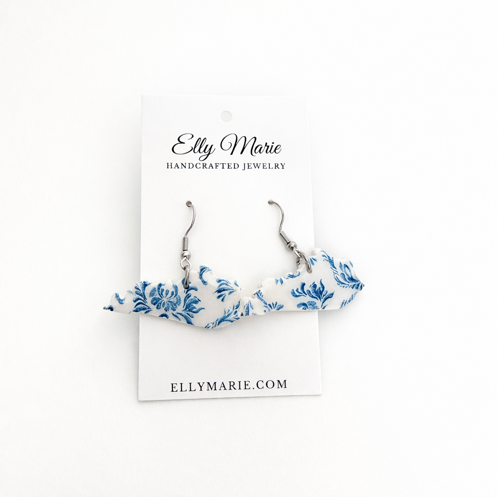Blue & White Floral Kentucky Clay Earrings